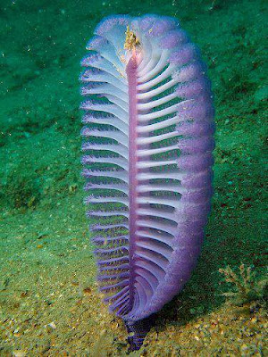 Sea pens are colonial marine cnidarians belonging to the order Pennatulacea. There are 16 families within the order; they are thought to have a cosmopolitan distribution in tropical and temperate waters worldwide. Sea pens are grouped with the octocorals ("soft corals"), together with sea whips and gorgonians.Although named after their feather-like appearance reminiscent of antique quill pens, only sea pen species belonging to the suborder Subselliflorae live up to the comparison. Those belonging to the much larger suborder Sessiliflorae lack feathery structures and grow in club-like or radiating forms. The latter suborder includes what are commonly known as sea pansies.